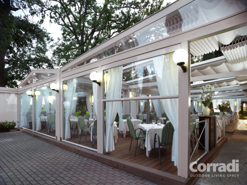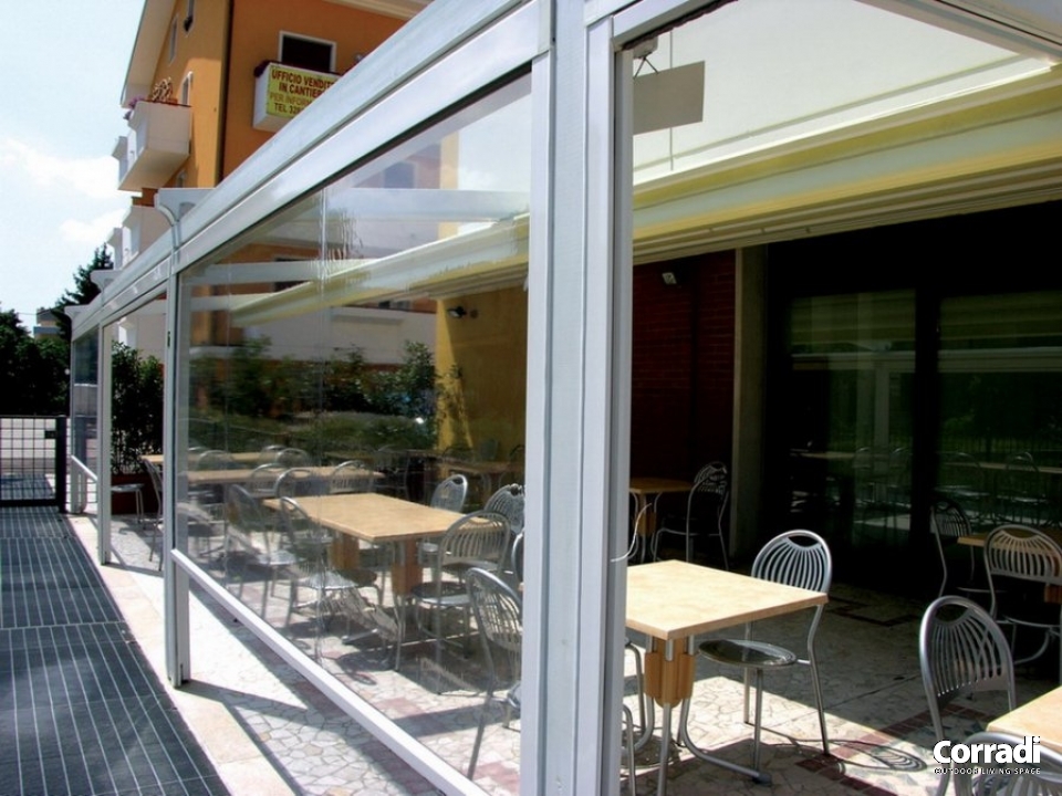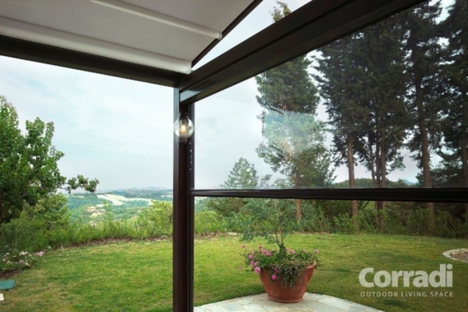 Ermetika® Cristal è la chiusura verticale che Corradi ha pensato non solo per Pergotenda® e pergole bioclimatiche, ma anche per pergolati e portici già esistenti. Questa sua caratteristica rende Ermetika® Cristal la soluzione versatile ma al tempo stesso di design per ottenere uno spazio esterno chiuso e confortevole.