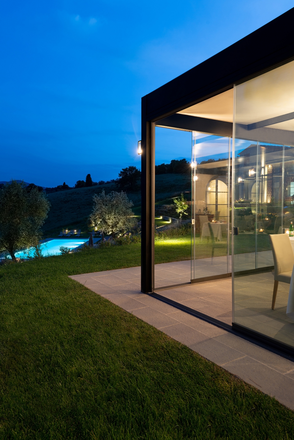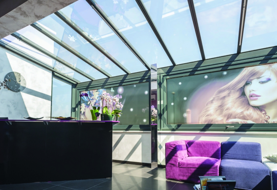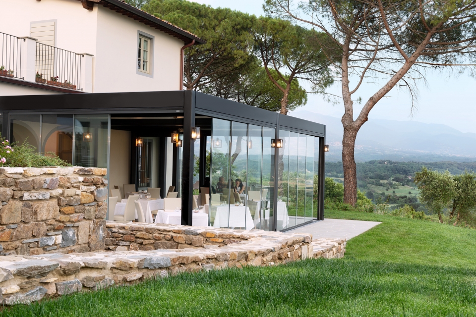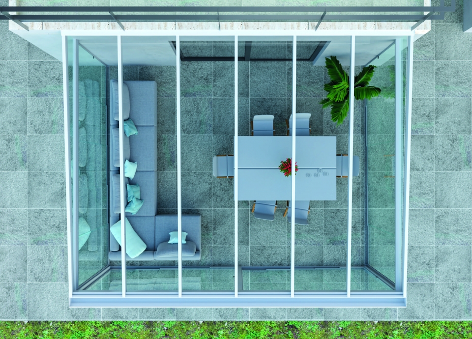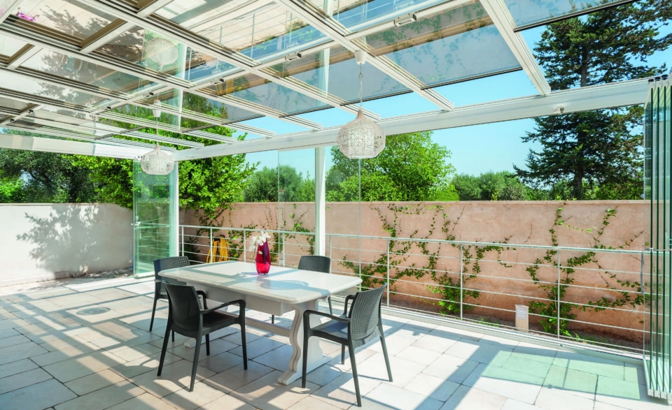 Questa soluzione vi consentirà di creare delle pergole vetrate dal funzionamento fluido e silenzioso e di godere della protezione totale del vetro senza limitare lo spazio visivo.