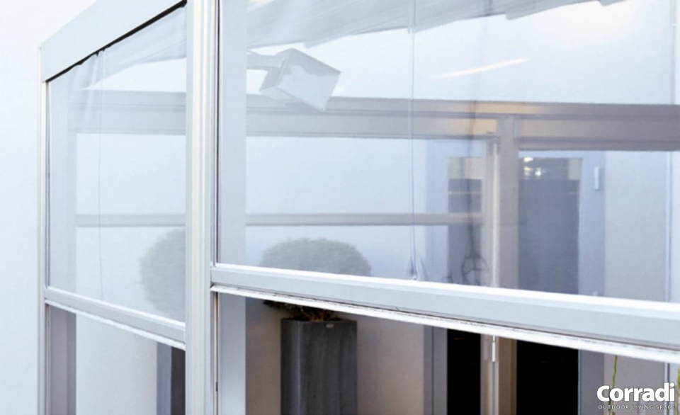 ERMETIKA® è la CHIUSURA VERTICALE ideata da CORRADI per PERGOTENDA® e Bioclimatica installabile anche su TERRAZZI o su PERGOLE già ESISTENTI. Ermetika® Corradi protegge dall'umidità e può rimanere aperta senza rompersi o strapparsi.