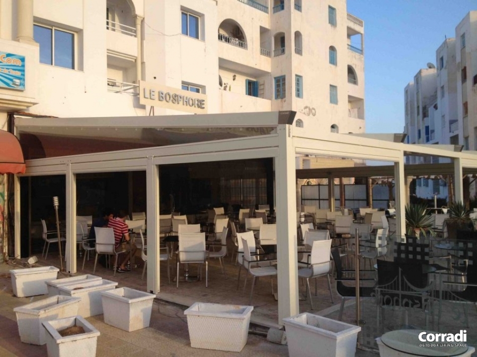 Il catalogo Corradi mette a disposizione la Pergotenda® B-Space in molte varianti e colorazioni. Rivolgetevi a Centro Italia per scoprire tutte le possibilità offerte da questa Pergotenda® e progettate con i nostri tecnici lo spazio esterno ideale per il vostro locale.