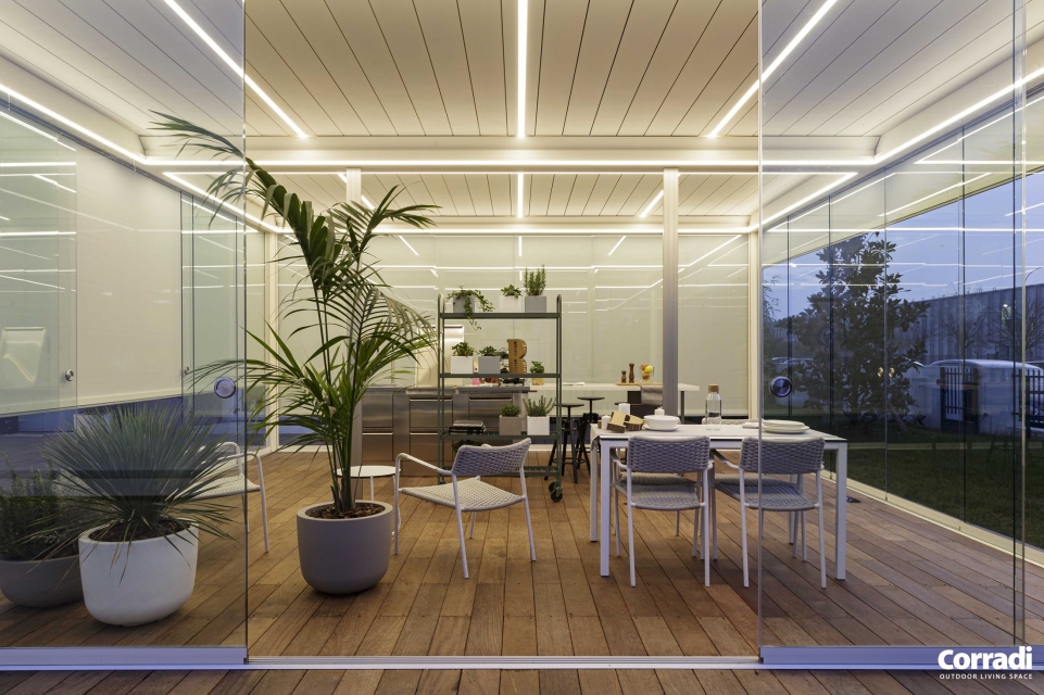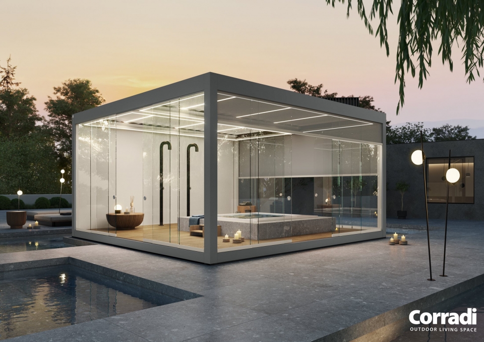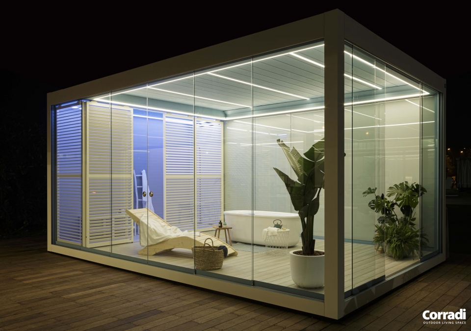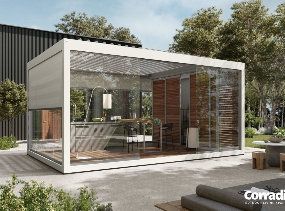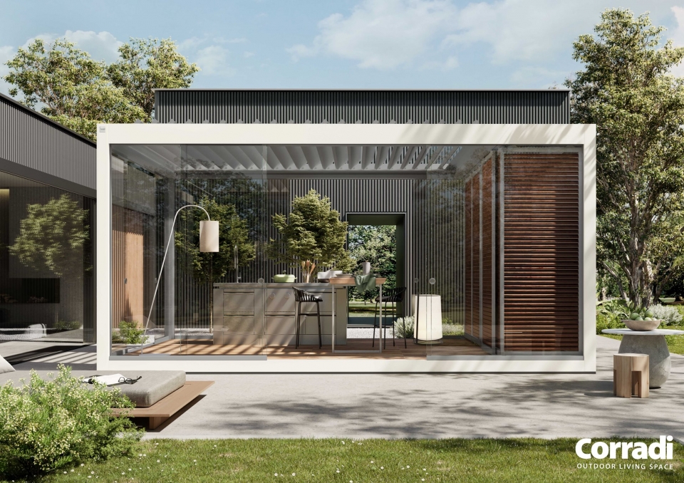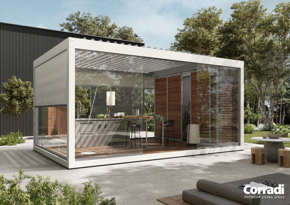 Questa Pergola creata da Corradi è una soluzione versatile, frutto dell’esperienza e del design Made in Italy di Corradi.