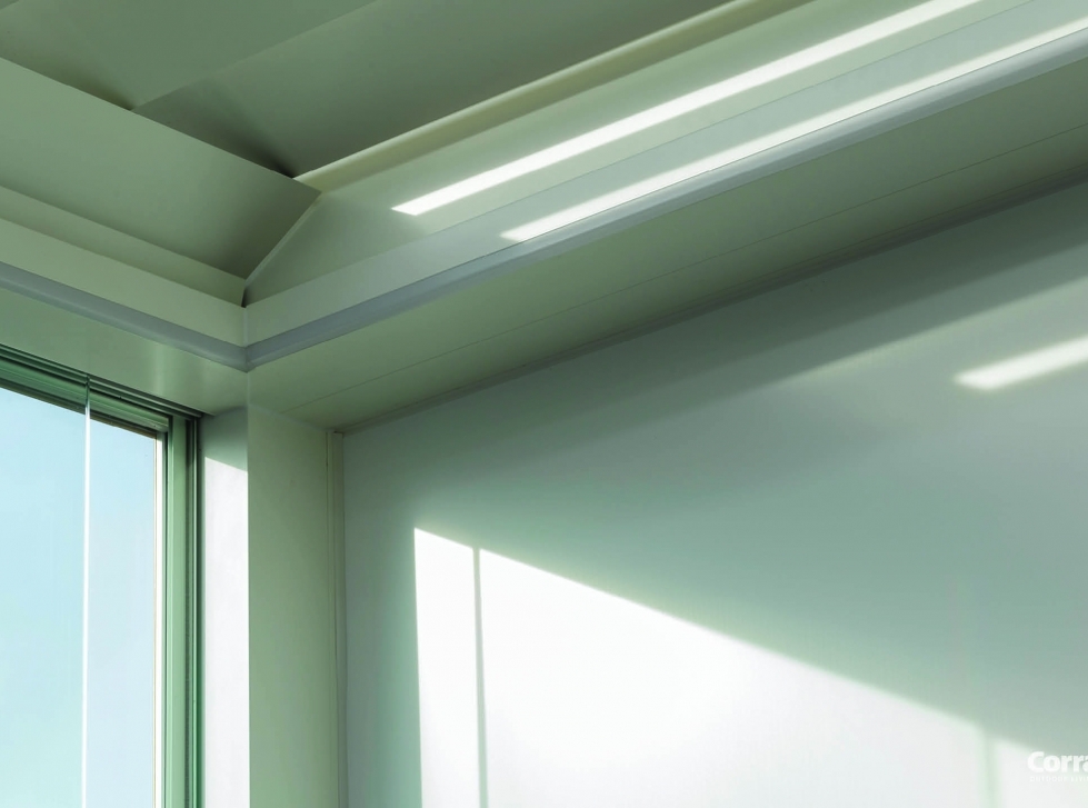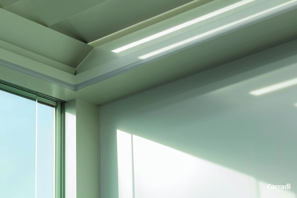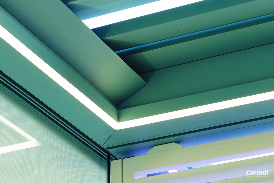 Per quanto concerne le lamelle, Corradi le ha ridisegnate creando continuità nelle linee e nel design. Le lamelle piatte hanno dimensioni 24,5 per 4,8 cm e possono ospitare luci led dimmerabili. Le luci si possono integrare in tutto il perimetro interno.