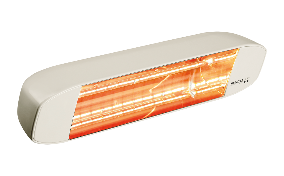 Uno dei prodotti di punta della serie Heliosa è la lampada a infrarossi Heliosa 11 Hi-design. Il punto di forza principale di questa lampada è la versatilità sia nel design che nella possibilità di installazione. La sua forma discreta infatti si adatta facilmente a qualsiasi tipo di spazio sia interno che esterno. In più queste lampade sono dotate di un aggancio specifico per essere fissate a parete ma anche sotto tende e ombrelloni.