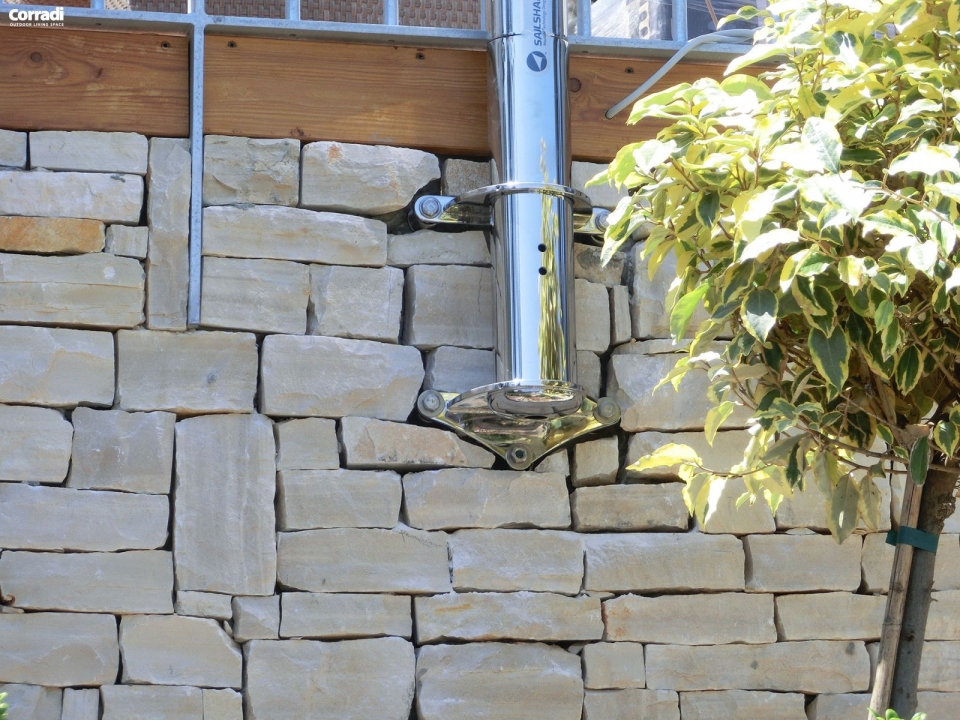 Ingombro: per Scirocco sono stati scelti dei pali in acciaio inox lucidati a specchio, vele con taglio a ferzi radiali, un solo motore posizionato nel palo avvolgitore e delle molle all'interno del palo di sostegno. Questo significa avere ingombri minimi per i fissaggi a parete, con un solo sufficiente a contenere la molla di tensionamento.