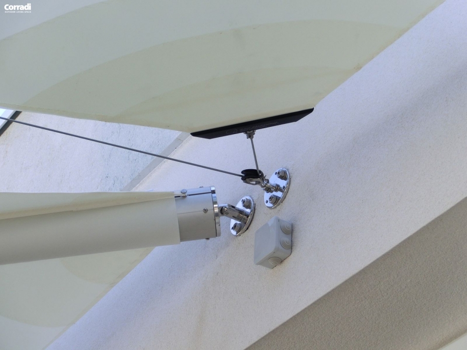 Automatismi: nella versione motorizzata, Scirocco è dotata di anemometro con regolazione dell'intensità del vento e chiusura della tenda nel caso di forte vento.